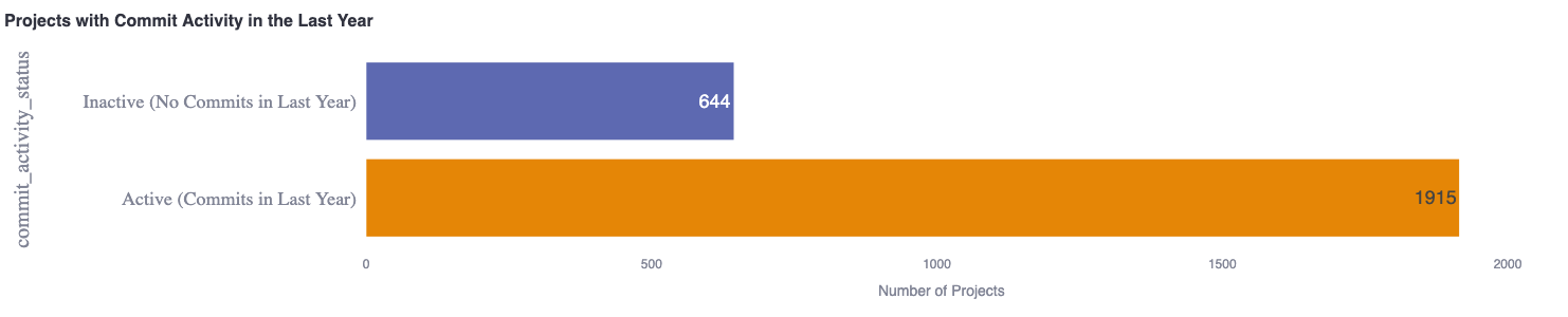 It’s easy to start a GitHub repository, but maintaining a complex climate model or energy grid simulator for years requires dedication, funding, and a robust community. I worried that many of these critical projects were just passion projects destined to fade after a few months. The “Ecosystem Overview” tab immediately put this fear to rest. The median project age is 6.2 years, and the “Projects Attributes” tab shows that 63% of the 2,539 indexed projects are active (with a commit in the last year).
