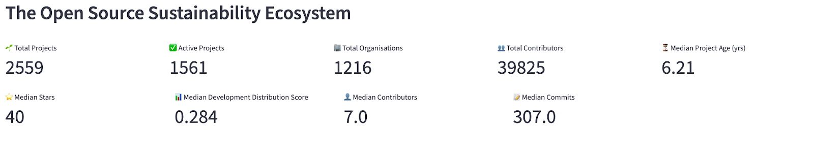 The true power of the OpenSustain Analytics dashboard gives us the empirical foundation to have a clear picture of the current state of the movement. Giving the community an opportunity to move from simple curiosity to a data-driven investigation, revealing critical insights that changed the view on open-source climate action.